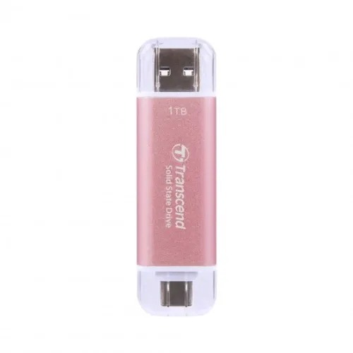 The Transcend TS1TESD310P 1TB Type-C Portable SSD is a perfect blend of style, performance, and portability, making it an ideal storage solution for users who prioritize both form and function. With a substantial 1TB storage capacity, this portable SSD offers ample space for users to store, transfer, and access a diverse range of files, from critical documents to high-resolution multimedia content, providing a versatile storage solution for professionals, creatives, and enthusiasts.Crafted with advanced 3D NAND flash technology, the ESD310P ensures not only expansive storage but also swift and reliable performance. The inclusion of both USB Type-A and Type-C interfaces adds convenience and versatility, allowing users to connect effortlessly to a wide range of devices for seamless data transfers. Impressive sequential read speeds of up to 1050 MB/s and write speeds of up to 950 MB/s characterize the ESD310P's high-speed performance. Whether you're transferring large files, editing high-definition videos, or running applications directly from the drive, this portable SSD ensures a responsive and efficient user experience. The stylish Pink color of the ESD310P adds a touch of personality to its functionality, making it a fashionable accessory for users who appreciate aesthetics. Weighing a mere 0.011KG and featuring compact dimensions of 71.3 mm x 20 mm x 7.8 mm, this portable SSD is designed for ultimate portability. Its lightweight and slim profile make it easy to carry in a pocket or bag, providing users with convenient access to their data on the go. Operating within a temperature range of 0°C (32°F) to 60°C (140°F), the ESD310P ensures optimal performance in various environmental conditions. The SSD is also equipped with shock resistance, enhancing its durability and reliability during everyday use, protecting your data from the bumps and jolts of a mobile lifestyle. Transcend stands behind the ESD310P with an impressive 5-year manufacturing warranty, showcasing their commitment to quality and customer satisfaction. In conclusion, the Transcend TS1TESD310P 1TB Type-C Portable SSD is a stylish, high-capacity, and portable storage solution that perfectly balances speed, aesthetics, and durability, catering to users who seek efficient and fashionable on-the-go storage.