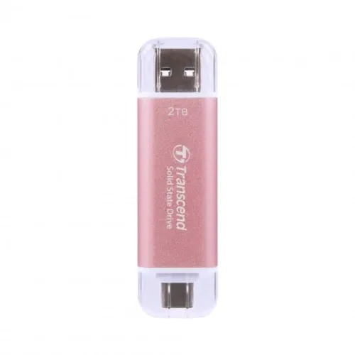 The Transcend TS2TESD310P 2TB Type-C Portable SSD brings together generous storage capacity, high-speed performance, and a touch of style in a compact and portable design. With an expansive 2TB storage capacity, this portable SSD offers users ample space to store and carry large files, multimedia content, and critical data, making it an excellent choice for users who prioritize both capacity and performance. The drive employs advanced 3D NAND flash technology, ensuring not only extensive storage capabilities but also reliable and efficient performance. What sets the TS2TESD310P apart is its versatile interface, featuring both USB Type-A and Type-C connections. This dual-interface design enhances compatibility, allowing users to connect the SSD to a wide range of devices effortlessly. Boasting impressive read speeds of up to 1050 MB/s and write speeds of up to 950 MB/s, the TS2TESD310P delivers swift data access, making it ideal for tasks such as transferring large files, editing high-resolution videos, or running applications directly from the drive. This high-speed performance caters to the needs of content creators, professionals, and individuals who require quick and efficient access to their data. Adding a touch of elegance to its functionality, the TS2TESD310P comes in a stylish pink color, making it not just a storage device but a fashion statement. Weighing a mere 0.011KG and measuring 71.3 mm x 20 mm x 7.8 mm, this portable SSD is designed for portability, allowing users to slip it into a pocket or bag effortlessly. Operating within a temperature range of 0°C (32°F) to 60°C (140°F), the SSD ensures optimal performance in various environmental conditions. The drive is lightweight, compact, and shock-resistant, making it reliable and durable for users who are on the move. Transcend stands behind the TS2TESD310P with a robust 5-year manufacturing warranty, showcasing their confidence in the product's quality and durability. In conclusion, the Transcend TS2TESD310P 2TB Type-C Portable SSD is a versatile, high-capacity, and stylish storage solution that seamlessly blends performance with aesthetics, catering to the needs of modern users who demand both functionality and a touch of personal flair.