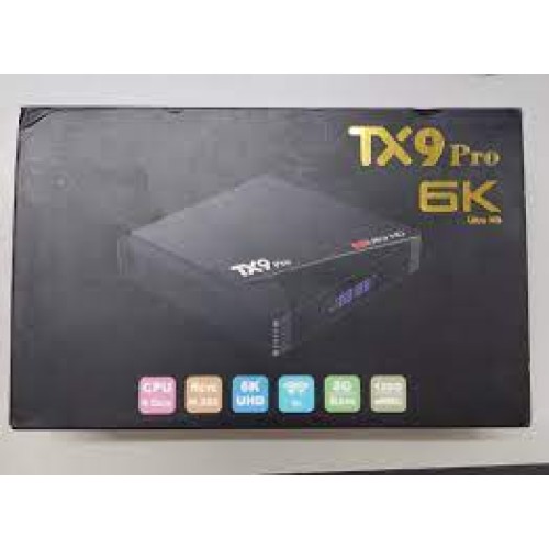 TX9 Pro 6K Ultra HD TV BOX is a powerful and feature-packed media streaming device that promises an exceptional entertainment experience. With its impressive specifications and capabilities, it's designed to cater to the diverse needs of modern consumers who seek top-notch performance and versatility in their home entertainment setups. At the heart of the TX9 Pro is the Amlogic S912 Quad Core Processor, which provides lightning-fast processing speeds, ensuring that you can effortlessly run your favorite streaming apps, games, and multimedia content. This processor is complemented by the Mali G31 GPU, which handles graphics with finesse, delivering sharp and vibrant visuals, perfect for Ultra HD content. One standout feature of this TV box is its seemingly generous 8GB of RAM, which ensures smooth multitasking and quick app loading. Additionally, it boasts a roomy 128GB of internal storage (ROM), providing ample space for apps, games, and media files. This substantial storage capacity is ideal for users who love to download and store their favorite movies, TV shows, and apps directly on the device. The TX9 Pro may claim to run on Android 11, but it's essential to note that it operates on Android 10. While it's not the latest Android version, it still offers a wide range of applications and a user-friendly interface that's familiar to Android users. The TV box is also well-equipped in terms of connectivity options. It features 2 USB ports, LAN/RJ45 for a wired internet connection, SPDIF for high-quality audio output, HDMI for connecting to your TV, AV for older displays, a DC Power Port for power supply, and a Micro SD Card Slot for expanding storage. Furthermore, the inclusion of Dual Band 5 GHz WiFi ensures a strong and stable wireless connection, crucial for streaming 6K Ultra HD content seamlessly. With this device, you can enjoy crystal-clear picture quality and lag-free streaming, even with bandwidth-hungry applications.
