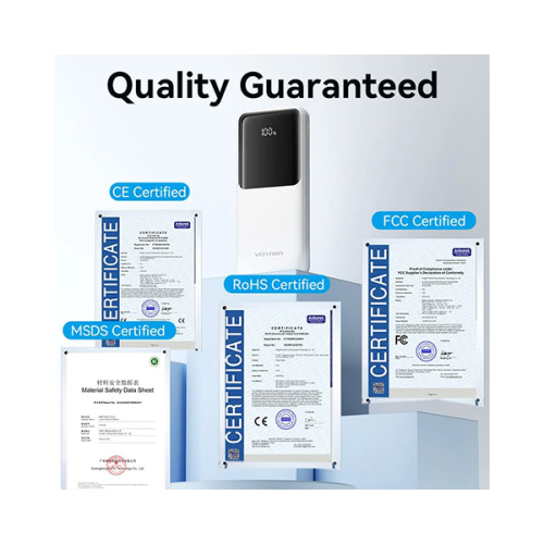 VENTION FHOW0 10000mAh LED Display Power Bank is an efficient way to charge multiple devices in the absence of an electrical outlet and battery. With a 10000mAh battery, it provides up to 2 full charges for an iPhone 15 Pro and about 1.6 charges for a Xiaomi 13, making it perfect for short trips or daily use. Equipped with fast charging options like 22.5W and PD 20W, it can charge an iPhone to 60% in just 30 minutes through the USB-C port.The output of this power bank is available in five settings, namely USB-A1 (22.5W), USB-A2(10W), USB-C (20W), built-in USB-C (22.5W), and built-in lightning (12W). The cables are integrated and the phone is compatible with iPhones, Samsung, Xiaomi, and all types of phones making it an all-round charging solution. The LED digital screen indicates the battery had a percentage and the TPE cables come as dual-function lanyards.With dimensions of 149.2mm x 69.2mm x 18. Worries not, it measures a mere 7mm, and can easily fit into a pocket or briefcase. The power bank has one of the best protection and it safeguards gadgets from short circuits, overvoltage, and overcurrent. First of all, it is compatible with numerous amount of devices, and second of all, it is approved for use on airplanes.
