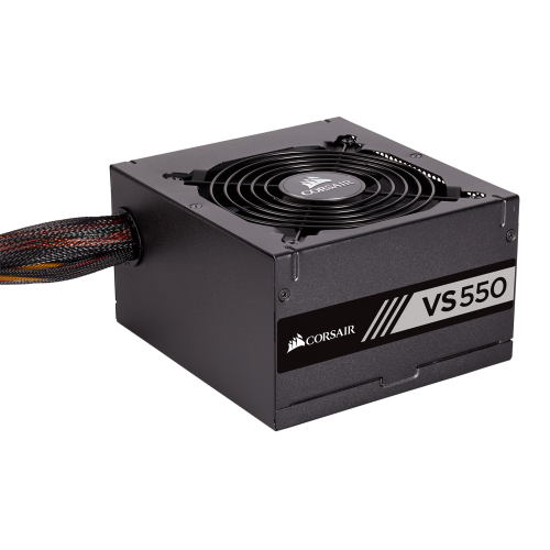 The CORSAIR VS550 delivers stable 80 PLUS efficiency power at an affordable price from the world’s most trusted name in PC power supplies. The VS550 delivers a guaranteed 550 Watts of continuous power. With universal input the power supply includes circuitry with components that can tolerate a wide range of mains voltage support (100-240 VAC). Multiple power protection circuits provide for added peace of mind. A dedicated single +12V rail saves you from the hassle of balancing your components across multiple power cables. Black cables, cable sleeving and connectors make it easy to build a great looking PC, while a super-compact 125mm deep housing fits in almost any modern PC case for maximum compatibility. The 120mm fan is thermally controlled, so it only spins up when needed, and is quiet even at full load. The VS550 is 80 PLUS rated for greater efficiency, so it generates less heat, and you’ll enjoy lower energy bills. The VS550 is backed with a comprehensive three-year warranty including legendary CORSAIR technical support and customer service.