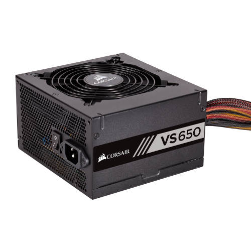 The CORSAIR VS650 delivers stable 80 PLUS efficiency power at an affordable price from the world’s most trusted name in PC power supplies. The VS650 delivers a guaranteed 650 Watts of continuous power. With universal input the power supply includes circuitry with components that can tolerate a wide range of mains voltage support (100-240 VAC). Multiple power protection circuits provide for added peace of mind. A dedicated single +12V rail saves you from the hassle of balancing your components across multiple power cables. Black cables, cable sleeving and connectors make it easy to build a great looking PC, while a super-compact 125mm deep housing fits in almost any modern PC case for maximum compatibility. The 120mm fan is thermally controlled, so it only spins up when needed, and is quiet even at full load. The VS650 is 80 PLUS rated for greater efficiency, so it generates less heat, and you’ll enjoy lower energy bills. The VS650 is backed with a comprehensive three-year warranty including legendary CORSAIR technical support and customer service.