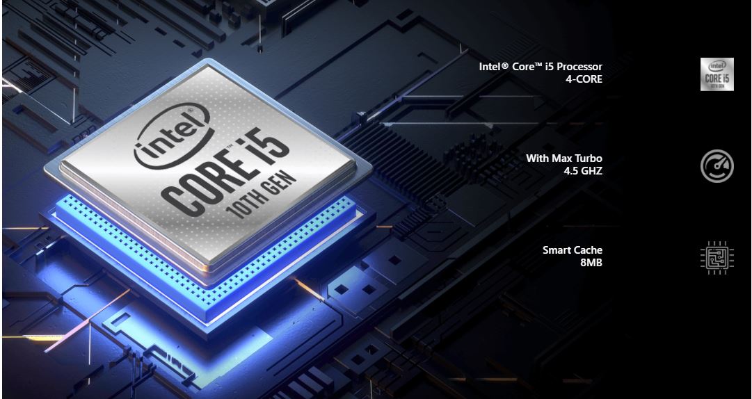 | Processor | Intel Core I5-10300H Processor (14nm, 2.5GHz, 8MB Smart Cache, TDP: 45W) | |
