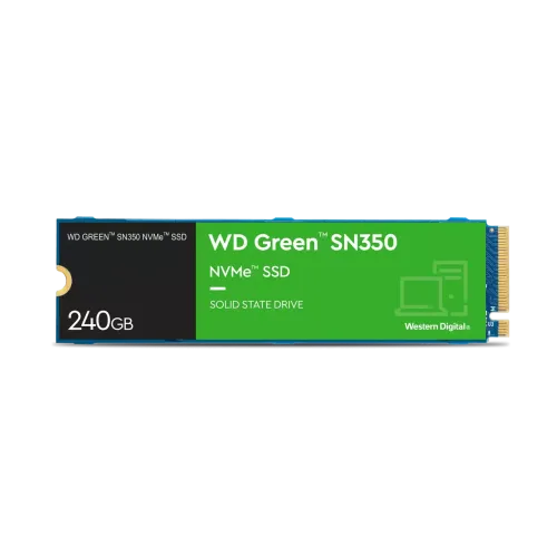 The Western Digital Green SN350 240GB NVMe SSD can revitalize your old computer for daily use. It ensures a sequential read performance of 2400MB/s and a sequential write performance of up to 900MB/s. This SSD can work up to four times faster than SATA drives as they have no moving parts. The Western Digital Green SN350 NVMe SSD offers a shock-resistant design to help protect your important data against accidental bumps and drops. The slim M.2 2280 form factor allows for a quick and easy upgrade for any computer with an NVMe slot. You can monitor current performance, space availability, temperature, and more to help ensure peak performance with the Western Digital SSD Dashboard software. The Western Digital Green SN350 240GB NVMe SSD comes with 3 years of warranty.