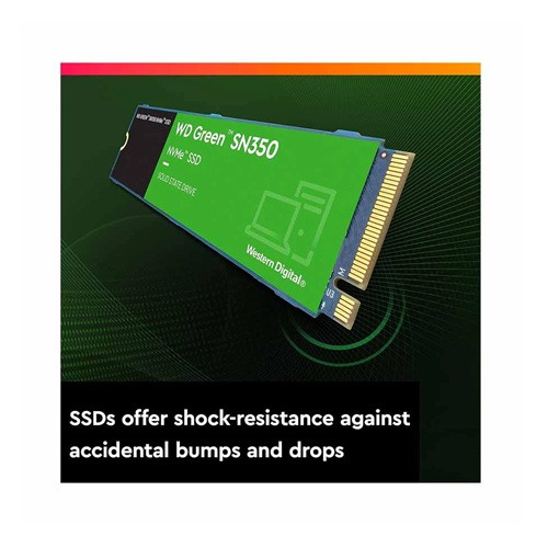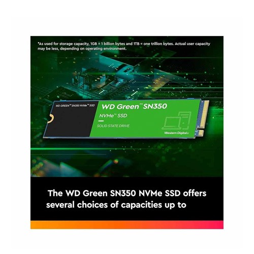 Western Digital Green SN350 500GB M.2 2280 Internal SSD is a cutting-edge storage solution designed to enhance the performance and efficiency of your computing experience. With its compact M.2 2280 form factor measuring at 80.15 x 22.15 x 2.38mm and weighing just 8.5 grams, this SSD seamlessly fits into a variety of devices, including laptops, desktops, and small form factor PCs. Powered by NVMe technology and utilizing PCIe Gen3 x 4 NVMe 1.3 interface, this SSD offers blazing-fast data transfer speeds, with a maximum read speed of 2400MB/s and a maximum write speed of 1500MB/s. Whether you're transferring large files, running demanding applications, or multitasking with ease, the SN350 ensures smooth and responsive performance. Built with reliable 3D NAND flash memory, this SSD provides a durable and efficient storage solution, offering a generous storage capacity of 500GB. Additionally, its advanced architecture delivers impressive random read and write IOPS (Input/Output Operations Per Second) of up to 300,000, enhancing overall system responsiveness and reducing loading times for applications and files. The Western Digital Green SN350 SSD boasts a shockproof design, safeguarding your data against accidental bumps and impacts, ensuring data integrity and reliability in various environments. With an operating voltage compatible with Windows 10 and 11, this SSD offers broad compatibility and seamless integration with modern computing systems. Moreover, with an approximate power consumption of 15W, this SSD delivers energy-efficient performance, helping to prolong battery life in portable devices and reducing power consumption in desktop systems. Backed by a comprehensive 3-year warranty, the Western Digital Green SN350 500GB M.2 2280 Internal SSD provides peace of mind, offering reliability and support for your storage needs. Whether you're a casual user, a content creator, or a professional seeking uncompromising performance, this SSD is an excellent choice for enhancing your computing experience.