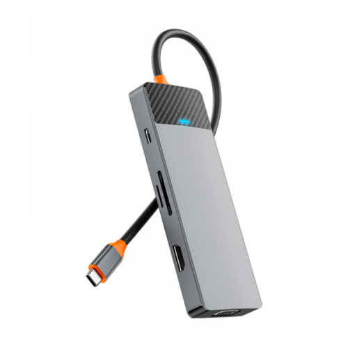 The WiWU A921HV 9-in-1 Linker Series Hub is a comprehensive and highly functional docking station designed to expand the connectivity of laptops, tablets, and other USB-C enabled devices. Encased in a durable aluminum alloy body, this hub is both aesthetically pleasing and efficient at dissipating heat, ensuring stable performance during prolonged use.