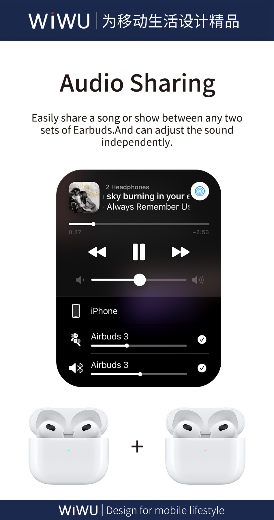 The New Generation of WiWU Active Noise Cancelling Airbuds 3. Smaller & lighter design. Also has a solution for travel and focus, allowing you to find soothing quietude during trips and the most demanding working hours.