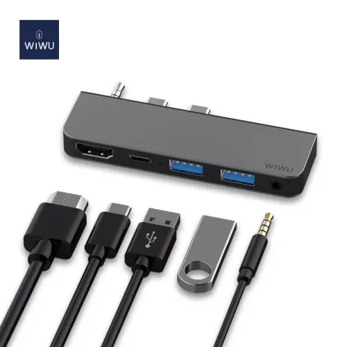 The WiWU Alpha M X Pro 5-in-1 Laptop Adapter Dongle is a compact and versatile solution designed to expand the functionality of your USB-C enabled devices, particularly the Huawei MateBook X Pro. Crafted from a high-quality aluminum alloy shell, this dongle is not only durable and corrosion-resistant but also acts as an efficient heat sink to prevent overheating.