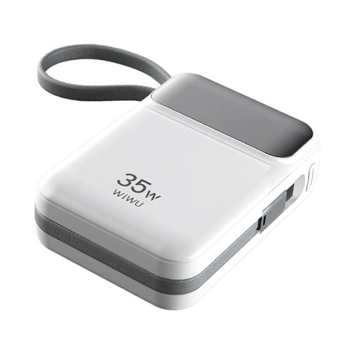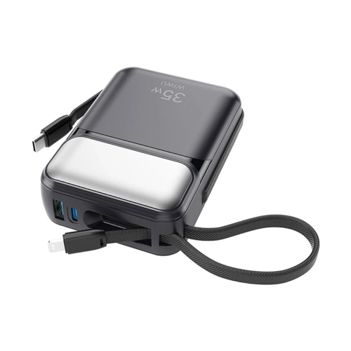 The WiWU Galaxy Series P036 is a high-capacity power bank designed to keep your devices charged on the go. With a 20,000mAh battery capacity, it ensures multiple charges for smartphones, tablets, and even laptops. The power bank supports up to 35W fast charging, allowing for quick and efficient power delivery to your devices. Its built-in dual cables, including Lightning and USB-C, provide convenience for charging multiple devices simultaneously without the need for additional cables. The digital display offers real-time information on the remaining battery percentage, helping you manage your charging needs effectively. The compact design, measuring 100 x 71 x 32mm and weighing 320g, makes it portable and easy to carry during travel or daily commutes. Safety features such as overcharge, over-discharge, and short circuit protection ensure the safety of your devices during charging.