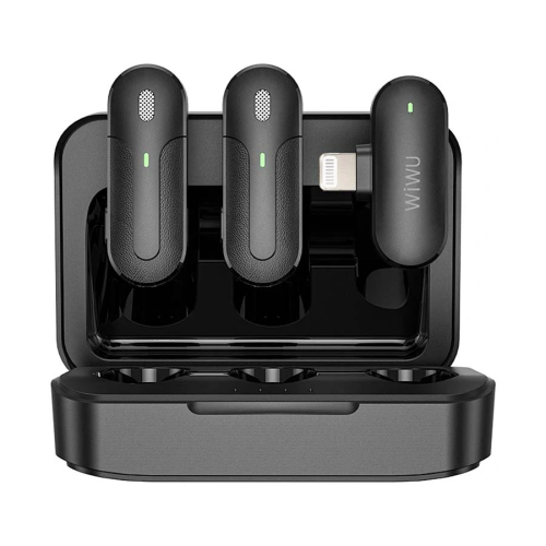 WiWU Portable Wireless Microphone for Smartphones offers a convenient and versatile solution for live shows, video recording, vlogging, and various other audio recording needs. With its dual microphone setup and advanced features, this microphone delivers exceptional audio quality and flexibility for content creators, performers, and professionals alike. Featuring a sleek and compact design, this microphone is designed to be portable and easy to use. The included charging case not only keeps the microphone safe and secure but also ensures that it's always ready for use whenever you need it. The black color scheme adds a touch of elegance and professionalism to its appearance. One of the standout features of this microphone is its wireless connectivity options. With support for both USB-C and Lightning connections, it offers universal compatibility with a wide range of devices, including smartphones, tablets, and laptops. This plug-and-play functionality eliminates the need for additional apps or complicated setup processes, allowing you to start recording audio right away. The microphone boasts an impressive battery capacity of 450mAh, providing long-lasting performance for extended recording sessions. Additionally, the included charging case allows for convenient recharging on the go, ensuring that you never run out of power when you need it most. With a frequency range of 20Hz to 20KHz+, the microphone captures a wide spectrum of sounds with clarity and accuracy, ensuring that every nuance of your voice is faithfully reproduced. The built-in ANC (Active Noise Cancellation) technology helps minimize background noise, ensuring that your recordings are clean and professional-sounding. Another notable feature of this microphone is its mute function, which allows you to easily silence the microphone when needed, giving you full control over your recordings. The microphone's fast transfer time of 25ms ensures minimal latency, allowing for seamless audio capture in real time. Overall, the WiWU Portable Wireless Microphone for Smartphones combines convenience, versatility, and high-quality audio performance in a compact and stylish package. Whether you're a content creator, performer, or professional, this microphone is sure to enhance your audio recording experience with its advanced features and reliable performance.