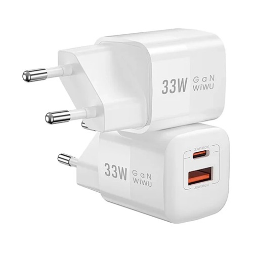 The Wiwu Nano GaN 33W USB and USB-C White Wall Charger (Wi-U008) is a fast and efficient charger designed to quickly power up your devices. With its EU plug and two-pin design, it is convenient to use. This wall charger features both USB Type-A and USB Type-C interfaces, allowing you to charge multiple devices simultaneously. It supports fast charging, ensuring that your devices get powered up as quickly as possible. The charger has a sleek white color, adding a touch of style to your charging routine. The Wiwu Nano GaN 33W USB and USB-C White Wall Charger is a reliable and durable option for all your charging needs. So, say goodbye to long charging times and enjoy the convenience of fast and efficient charging with this amazing wall charger.