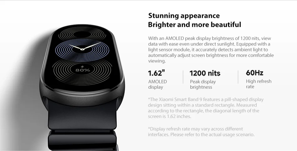 | Battery | Battery Life: Xiaomi’s Mi Band 4 had an impressive battery life of up to 20 days, so we hope to see similar or better battery performance in the Mi Smart Band 9. |