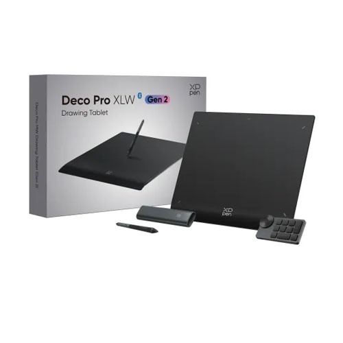 XP-Pen Deco Pro XLW Gen 2 emerges as a groundbreaking addition to the world of digital creativity, offering both novice and professional artists an expansive canvas to bring their visions to life. At the heart of this wireless graphics drawing tablet is the sophisticated X3 Pro Smart Chip Stylus, designed to deliver an unmatched drawing experience. With its exceptional precision and responsiveness, the stylus ensures every stroke is captured with the utmost accuracy, thanks to a remarkable resolution of 5080 LPI and a swift report rate of 200 RPS. The tablet's generous 15"x 9" active area provides ample space for complex projects, allowing artists to work comfortably and efficiently. Enhanced by a 60° tilt recognition, it closely mimics the natural movement of a traditional pen on paper, offering a familiar yet enhanced drawing experience. The reading height of 10 mm further adds to its intuitive use, ensuring seamless interaction between the stylus and the tablet. Designed for versatility, the Deco Pro XLW Gen 2 supports dual connectivity. It can easily switch between a wireless Bluetooth V5.0 connection and a wired setup using its USB-C interface, catering to different user preferences and work setups. The tablet boasts a substantial battery capacity of 3030mAh, providing up to 10 hours of continuous use, ensuring that creative flow isn't interrupted. Compatibility is a strong suit of the XP-Pen Deco Pro XLW Gen 2. It offers a broad range of support for operating systems, including wired connections to Windows 7 or later, macOS 10.10 or later, Chrome OS 88 or later, Android 10.0 or later, and Linux. Bluetooth connectivity extends to Windows 10 or later and macOS 10.10 or later, making it a versatile choice for various creative software and environments. Backed by a 1-year warranty, this tablet stands as a reliable tool for artists seeking to explore digital realms without bounds. Whether for illustration, design, or animation, the XP-Pen Deco Pro XLW Gen 2 Wireless Graphics Drawing Tablet is engineered to inspire and enhance creativity.