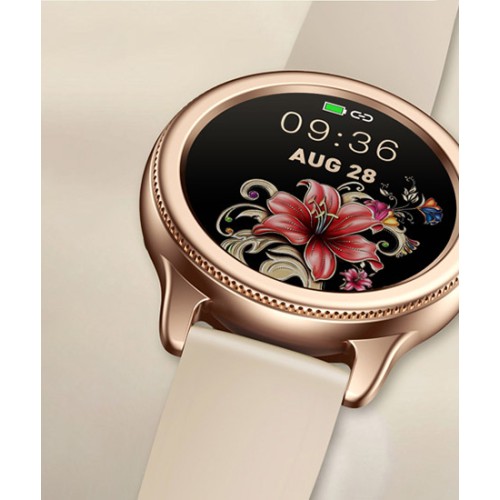 The Zeblaze Lily Women Smart Watch is an excellent Smart Watch from the brand Zeblaze. The Zeblaze Lily can proficiently handle your agendas, notify you of incoming calls or messages, and provide movement reminders when you have been sitting for too long. The watch will also track your events, offer Do Not Disturb, stopwatch, and weather forecast functions, and enable the setting of alarms and timers. This particular smartwatch model is specially made for women's usage. This is why this watch comes with some women-centric features. This Round dialed smartwatch is specifically designed for women only. This watch has a Borderless design That uses exquisitely crafted curved glass. but apart from that, This watch supports a variety of features and customizable options. The Aluminum made dial is Pink colored. The Display is a borderless IPS panel 1.09 Inch screen that supports the screen resolution of 240 x 240 pixels. This smartwatch is compatible with Android and IOS Operating systems. This watch comes with various sensors like the Heart-rate, Proximity, and Accelerometer sensor. This smartwatch supports Bluetooth Version 5.0 as a form of connectivity. But it does not have Bluetooth calling, NFC, or GPS. but this watch has 9 Multi-sports modes with a real-time Heart rate monitor, Blood Oxygen Monitor, Sleep monitor, cycle monitor, and more. This watch is IP68 Waterproof. The supported apps include Sedentary reminders, Sleep monitors, Alarms, barometers, Brightness Adjusting, etc. The Battery Capacity is180 mAh. with a Normal Usage of around 2-3 days. This smartwatch utilizes an App named GloryFit. This app is compatible with both Android and iOS. This watch has interchangeable Straps made with Silicone. with the basic watch mode. The 180 mAh Battery can last up to 4 days on a single charge. The dimensions of this smartwatch are 46.3 x 40.5 x 11.4 mm.