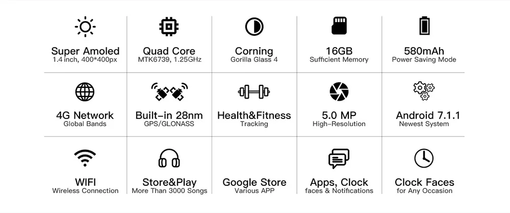 | Display | Screen type: AMOLED Screen size: 1.4 inch Screen resolution: 400 x 400 |
