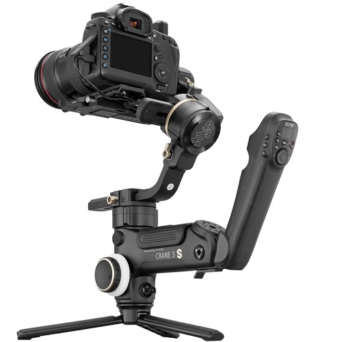 The Zhiyun Crane 3S 3-Axis Handheld Gimbal Stabilizer provides a diverse option for completing difficult shooting assignments. Both handle modifications have many thread holes of various diameters to install accessories and are readily disassembled. The modular architecture of the CRANE 3S provides for increased flexibility with a motorized dolly, jib, cable cam, Easyrig, and other accessories.