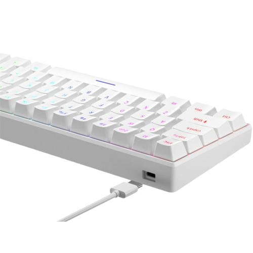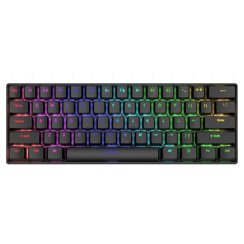 Design and Features: The keyboard is constructed with an ABS body and often comes with PBT or ABS keycaps. It includes multicolor or row-assigned RGB backlighting with multiple lighting modes and adjustable brightness, controlled via the Fn key combinations. For performance, it supports multi-key rollover (up to 21 or 26 keys anti-ghosting) to ensure accuracy during fast input. The H61K provides an ergonomic design with adjustable feet and is broadly compatible with Windows and macOS systems. It is generally marketed as a highly cost-effective entry point into the world of mechanical keyboards.