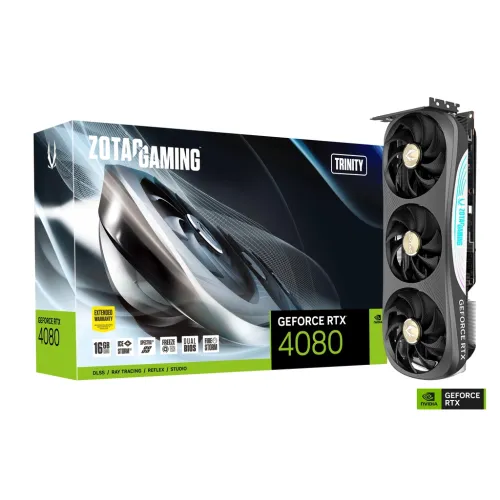 The ZOTAC GAMING GeForce RTX 4080 16GB Trinity Graphics Card features an all-new aerodynamic-inspired design and the world's most advanced gaming GPU powered by the NVIDIA Ada Lovelace architecture. Using cutting-edge cooling technologies derived from the flagship model, the Trinity packs enough punch to provide gamers with the necessary blistering FPS in the most recent titles. It's NVIDIA Ada Lovelace Streaming Multiprocessors: Up to 2x performance and power efficiency. This graphics card 4th Generation Tensor Cores: Up to 4x performance with DLSS 3 vs. brute-force rendering & 3rd Generation RT Cores: Up to 2X ray tracing performance. It features IceStorm 2.0 Advanced Cooling. FREEZE Fan Stop, Active Fan Control, Dual BIOS & it has also SPECTRA 2.0 RGB Lighting (compatible with external LED strip). The ZOTAC GAMING GeForce RTX 4080 16GB Trinity Graphics Card comes with a 02 years warranty (3 Years Warranty available if registered online within 28 days of Purchase) Total warranty:- 2+ 3 ( after reg.) = Total 5 years.